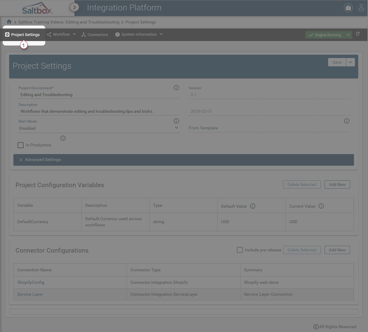 Project Settings are used to define a project and configure shared details that apply to multiple workflows.